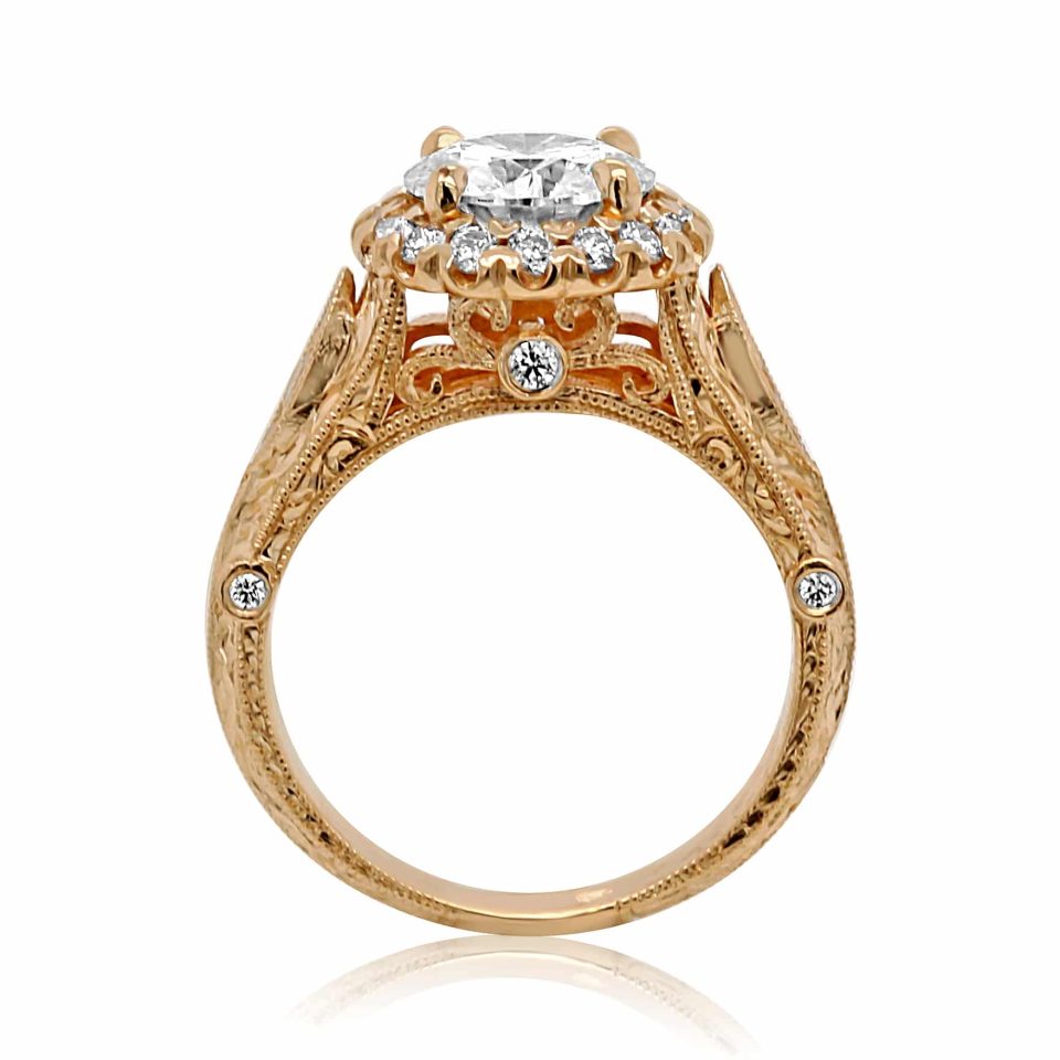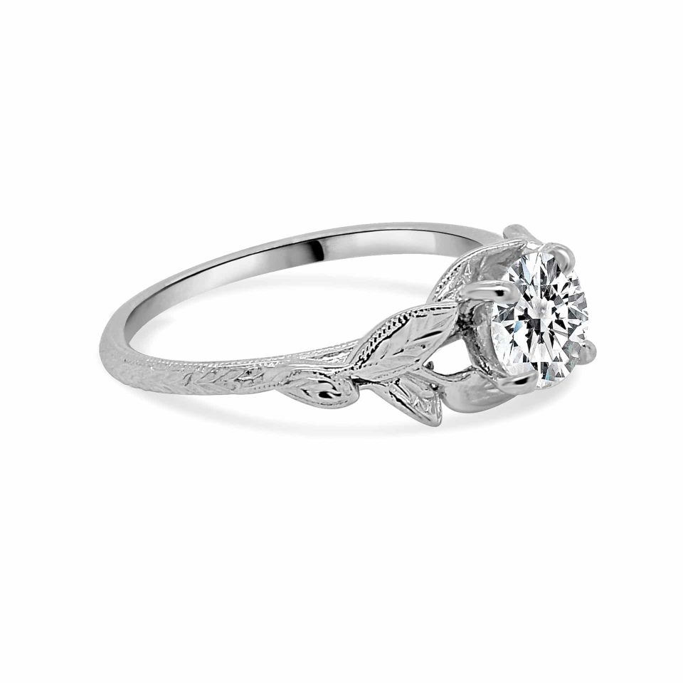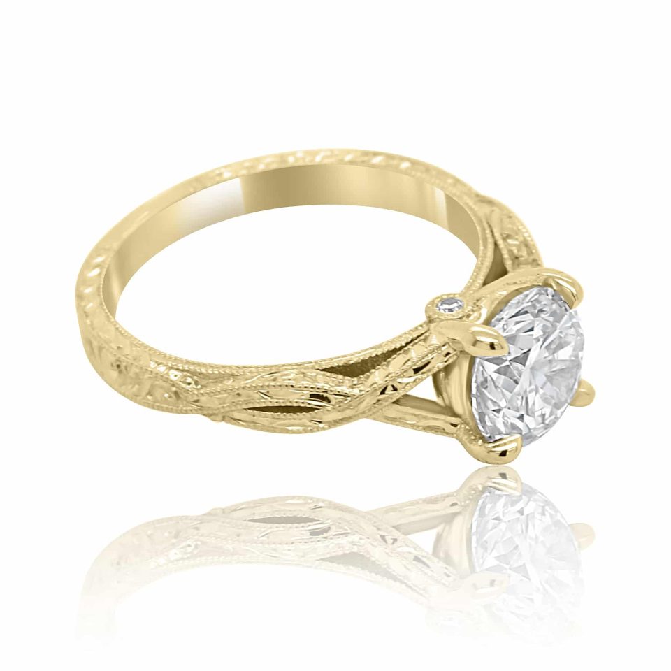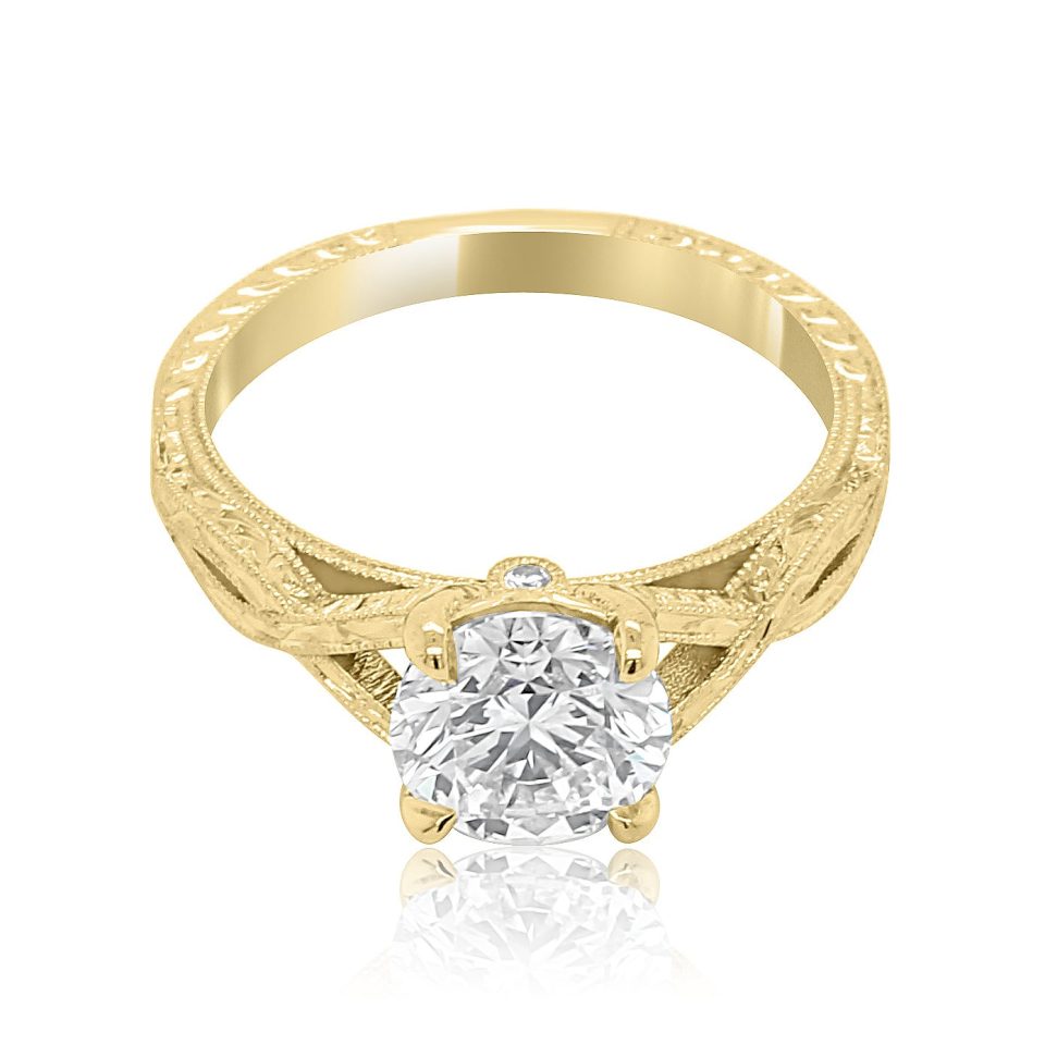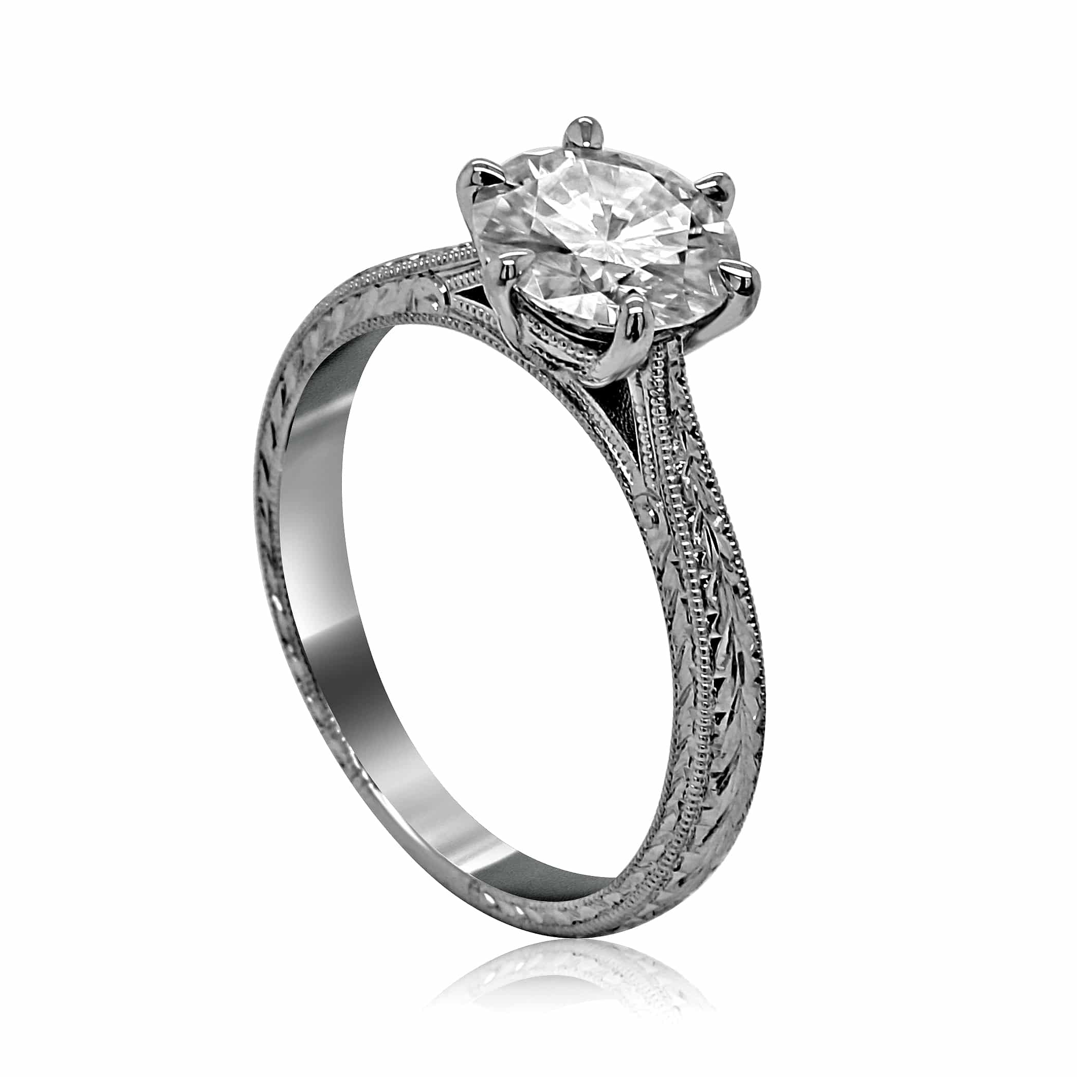 Art Deco Style Diamond Engagement Ring – Six-Prong Antique Vintage Style with Hand-Engraved Scroll Filigree