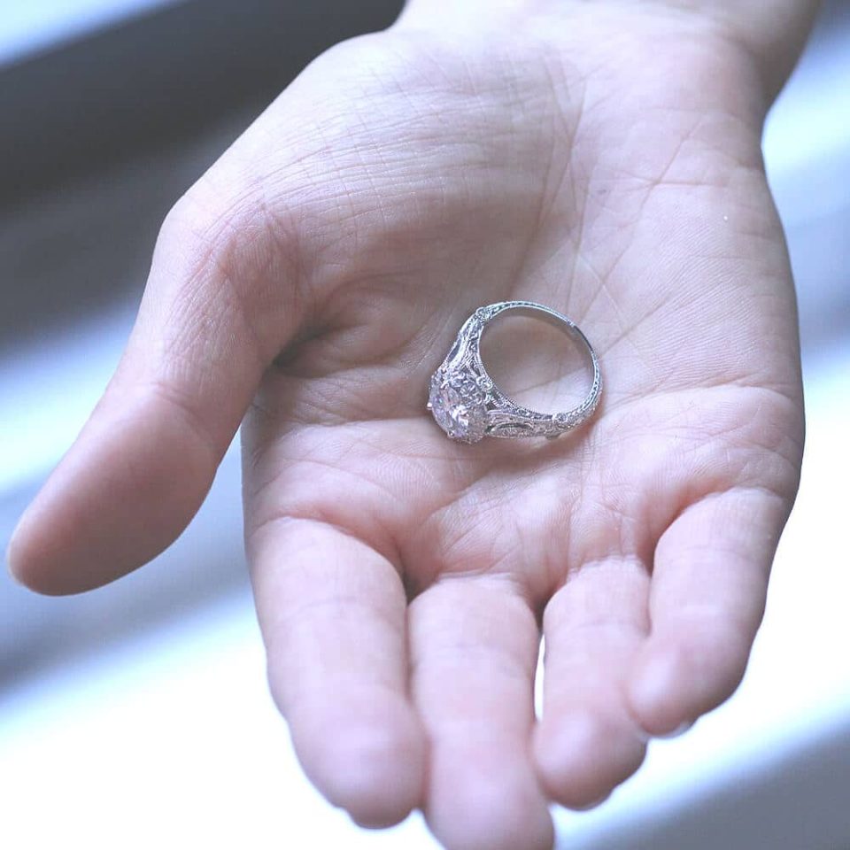 From the first glance, the design shows true Art Deco influence. Skilled artisans hand engrave every detail. Graceful scroll motifs flow along the band, while delicate filigree accents add depth. In addition, fine milgrain edges frame the design, giving the ring an authentic antique feel. Because we make each ring from scratch, no two are exactly alike. You receive a unique piece created just for you.