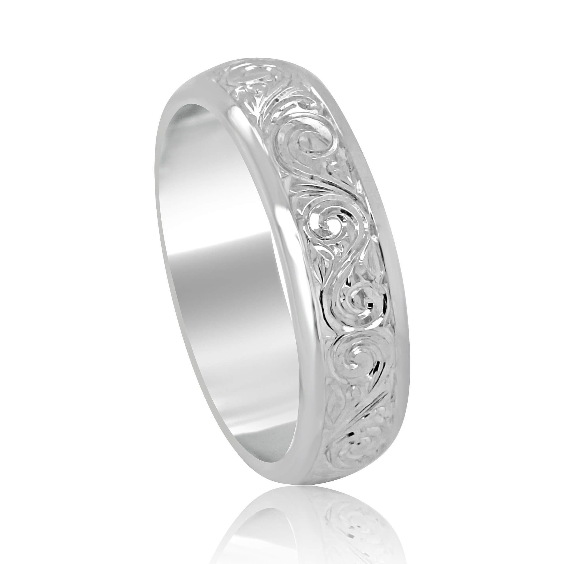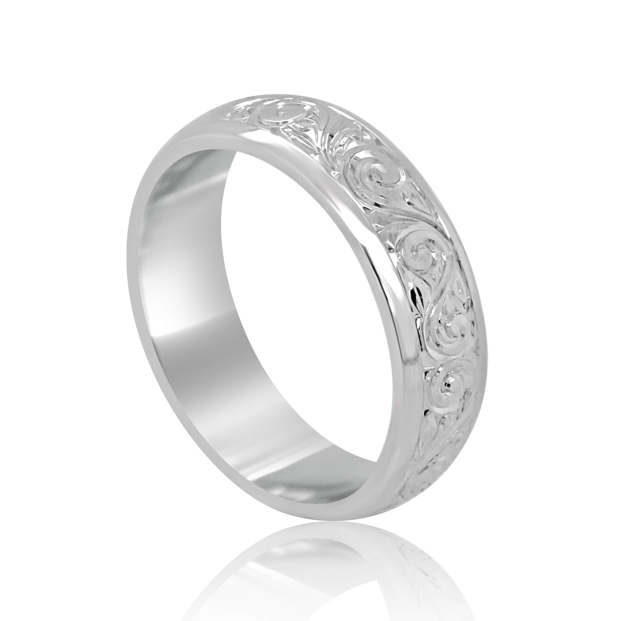 Keywords: vintage men’s wedding band, Art Nouveau men’s ring, hand engraved men’s band, domed wedding ring, rounded top band, 14K white gold ring, platinum men’s ring, palladium wedding band, handcrafted ring USA, milgrain detailing, hand carved engraving, customizable men’s jewelry, unique men’s wedding band, vintage style ring for men, comfortable fit wedding band, antique inspired men’s ring, engraved scrollwork ring, high-polish finish ring, custom engraving options, luxury men’s wedding band.