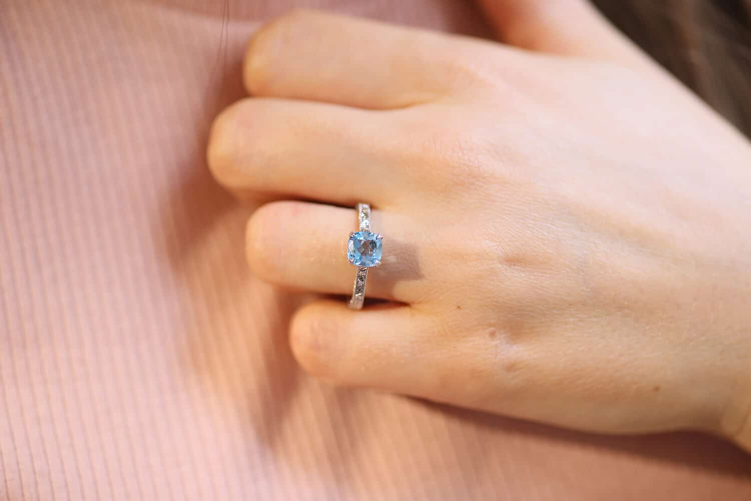Embrace the allure of vintage beauty and create cherished memories with our Vintage Blue Topaz Engagement Ring—a perfect symbol of love and commitment that stands the test of time.