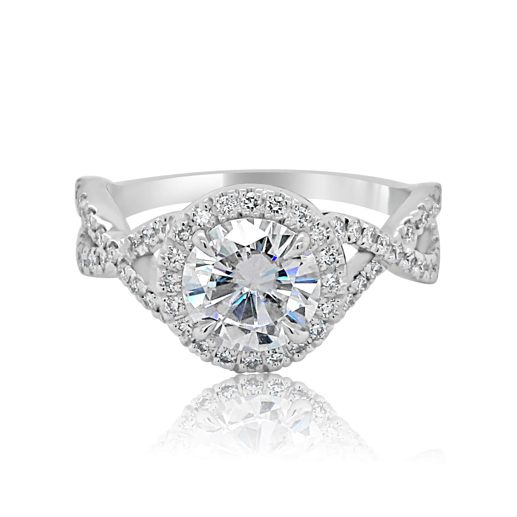 Center Stone: 8mm Forever One Moissanite (Charles and Colvard)