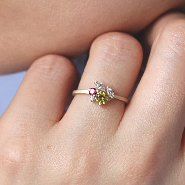 Cluster Multistone Diamond Yellow Sapphire Ruby Stackable Promise Engagement Ring