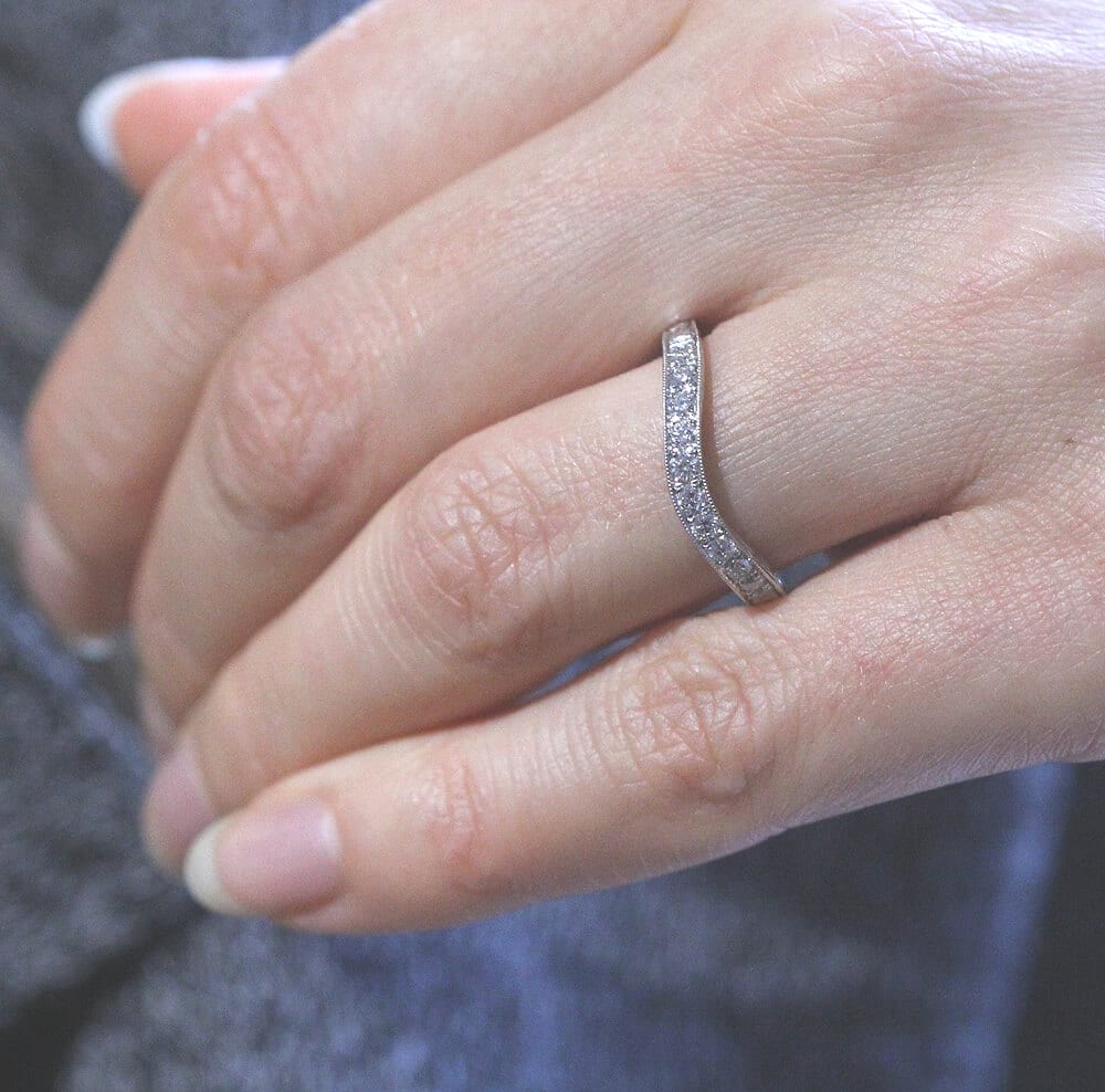 Curved Vintage Engraved Diamond Pave Band 2.7mm