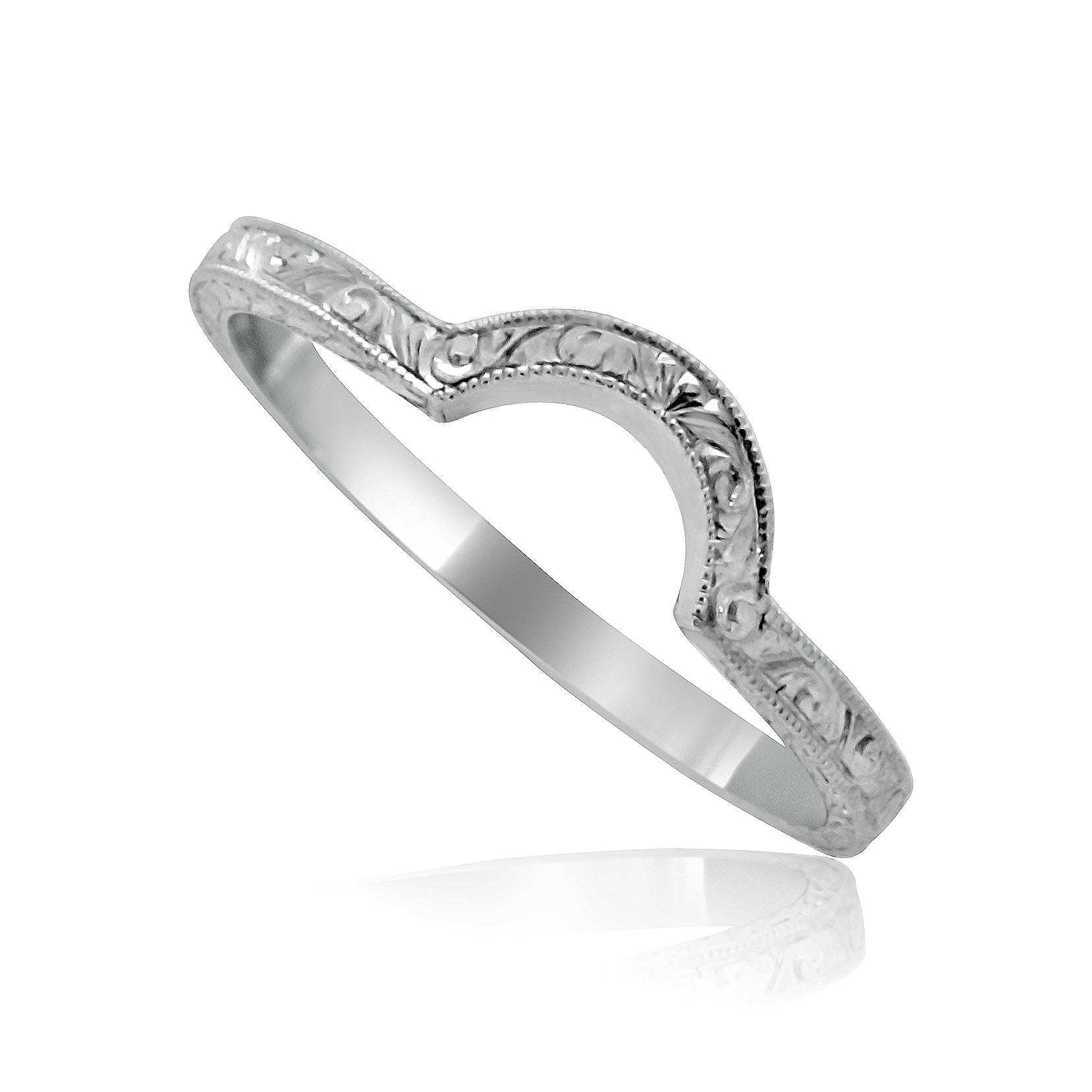 Vintage Curved Wedding Band for Round Engagement Rings