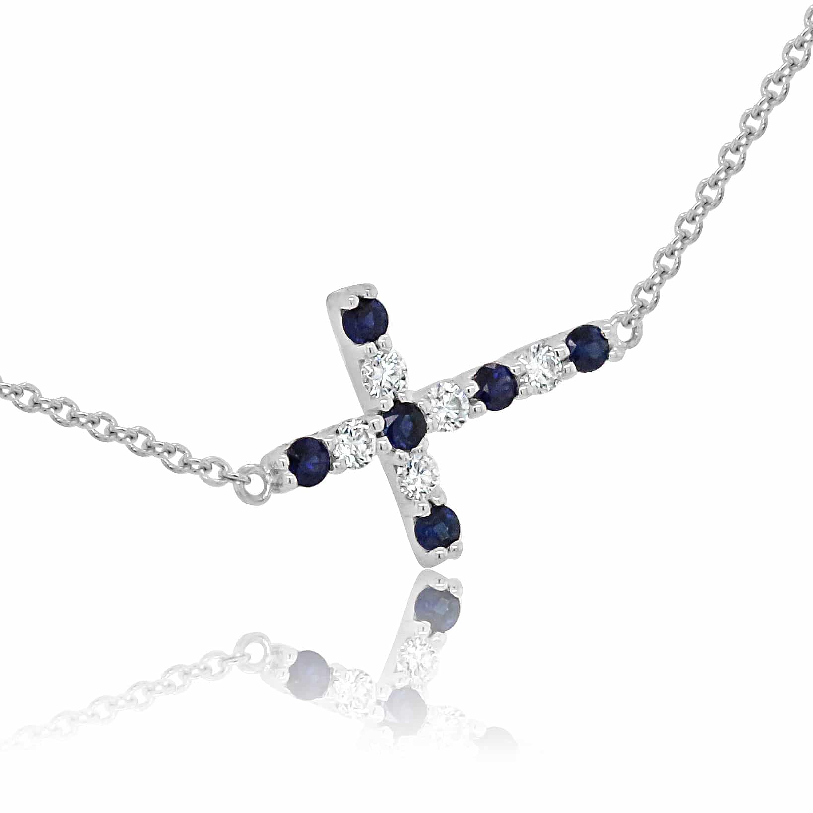 Whether chosen as a heartfelt gift or a treasured keepsake, this diamond and sapphire sideways cross pendant celebrates the beautiful balance between tradition, spirituality, and individuality.