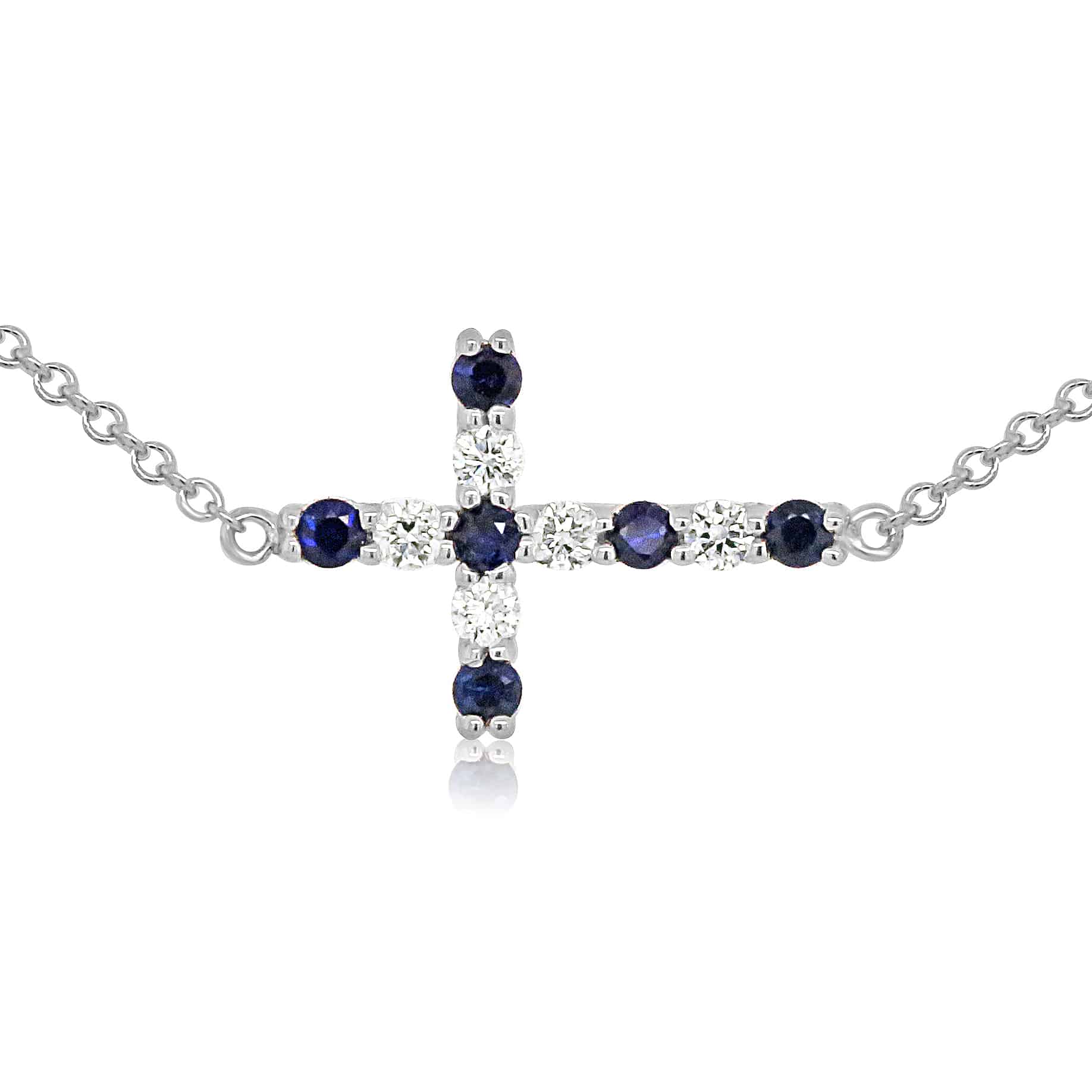 Diamond & Sapphire Mini Sideways Cross Pendant