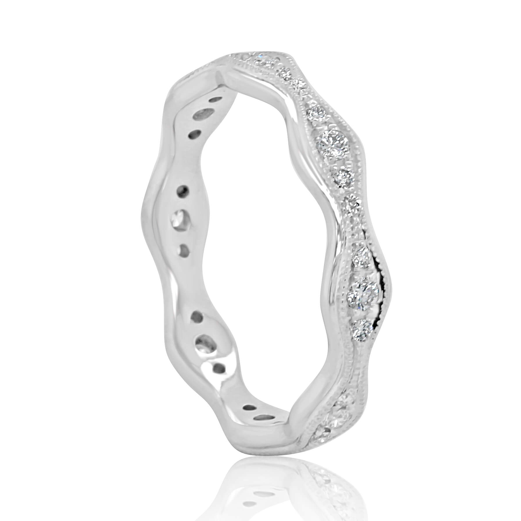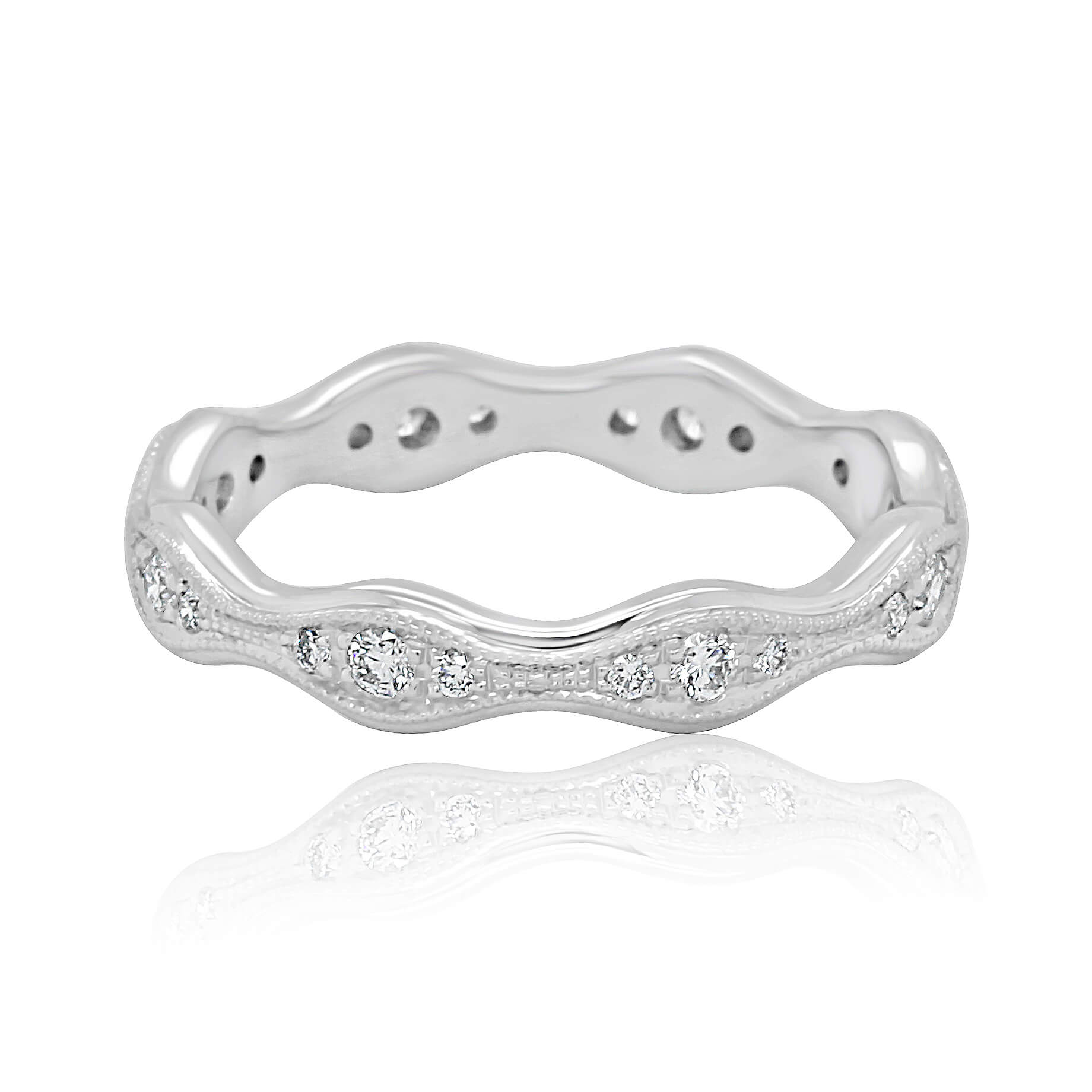 Introducing the Diamond Wave Eternity Ring by OroSpot, a stunning 14k yellow gold wedding band featuring a continuous pave setting of diamonds (.36cttw, G-SI1 quality) encircling the entire band. With a width of 3.5mm and a height of 1.5mm, this elegant ring is available in all sizes and gold colors, symbolizing eternal love and beauty. Embrace the timeless elegance of this exquisite ring, a cherished symbol of everlasting devotion, designed and crafted by OroSpot to celebrate your love and commitment.