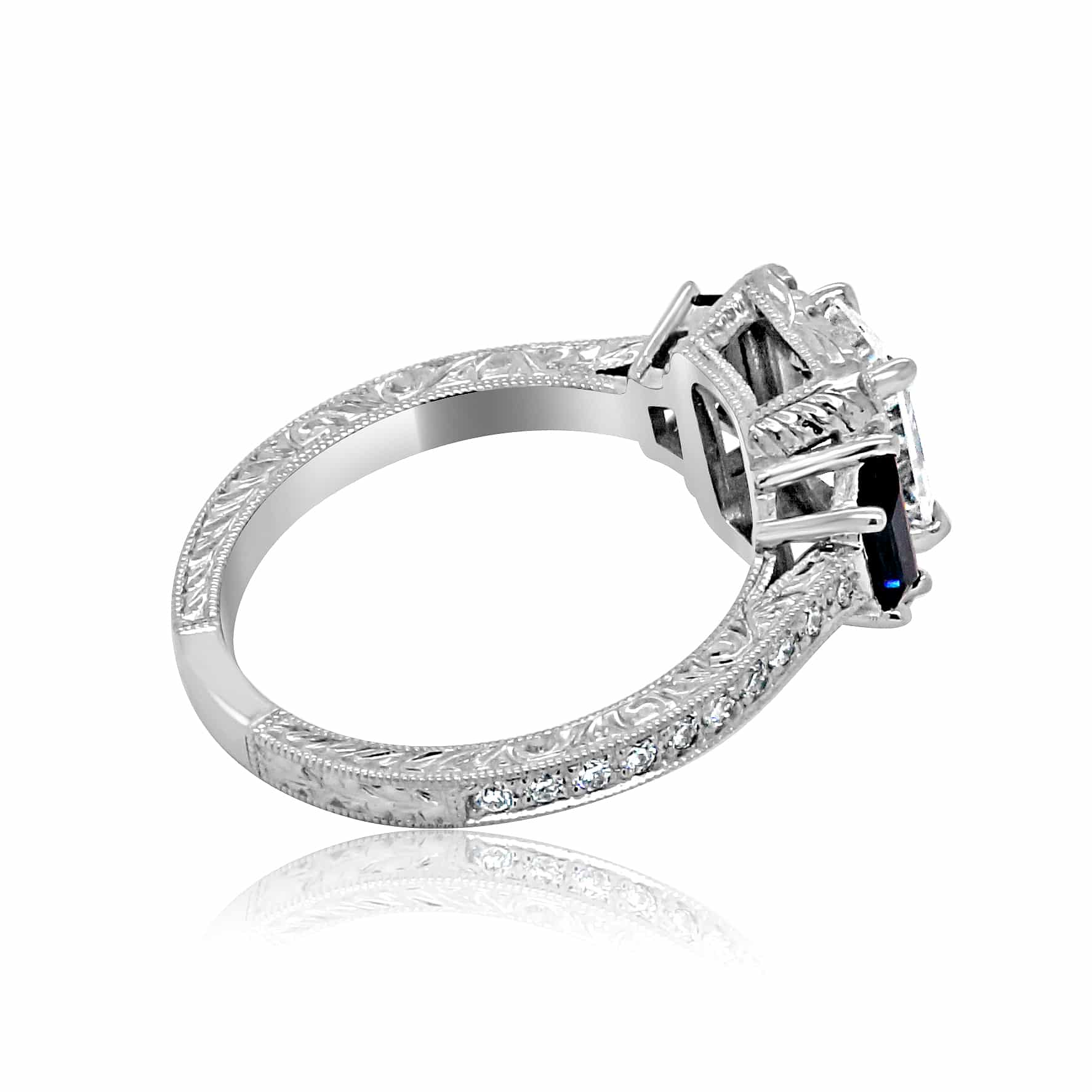 Center and Side Stones Set: 4 Prong Set