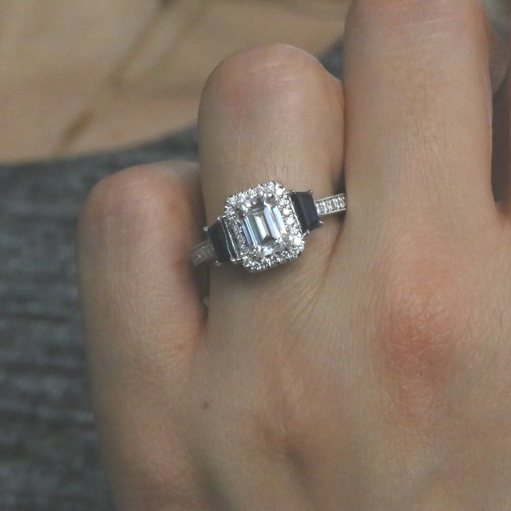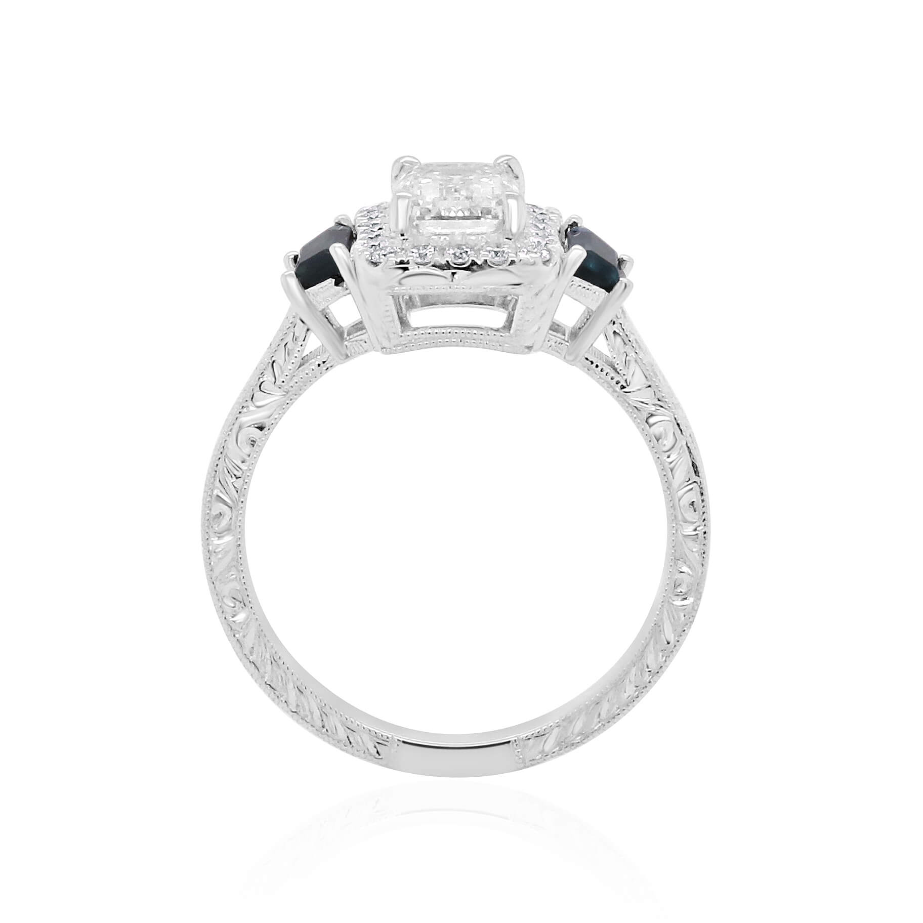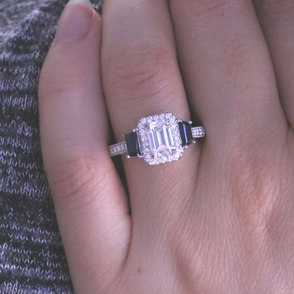 Emerald Moissanite Sapphire Engagement Ring