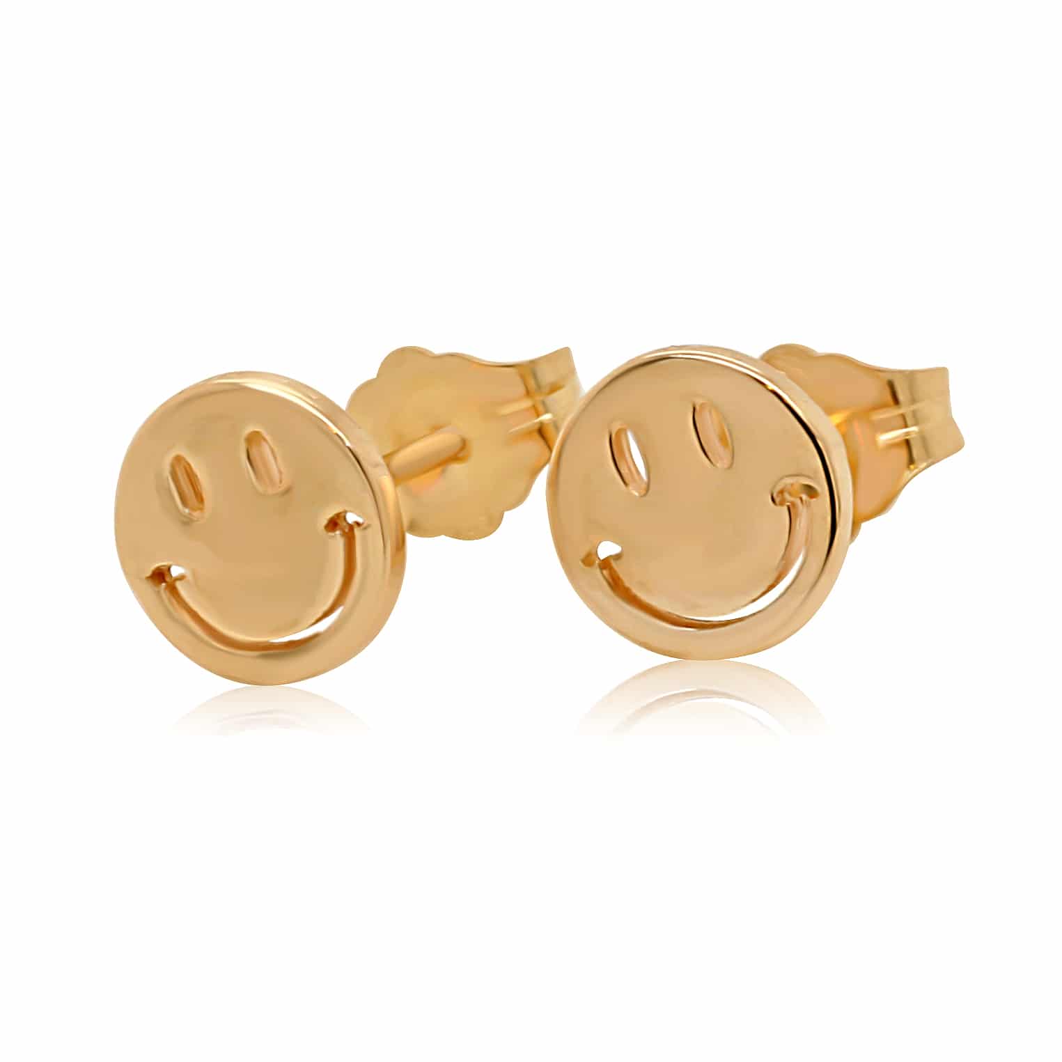 Smiley Face Gold Earrings – 14K Solid Gold Studs