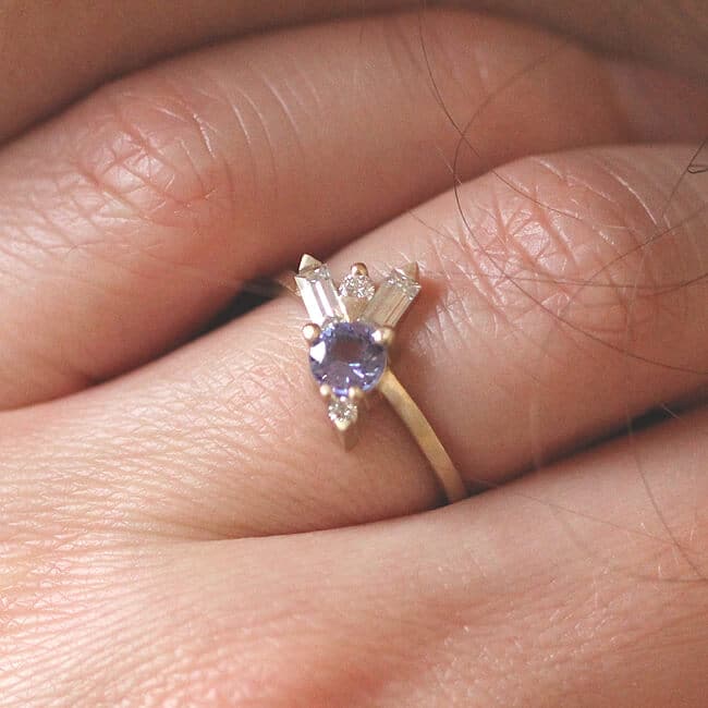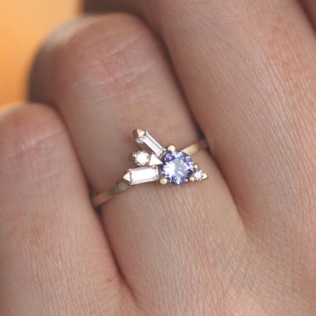 Tanzanite Promise Ring Baguette Moissanite Diamond Cluster Multistone Gold Delicate Gemstone Ring