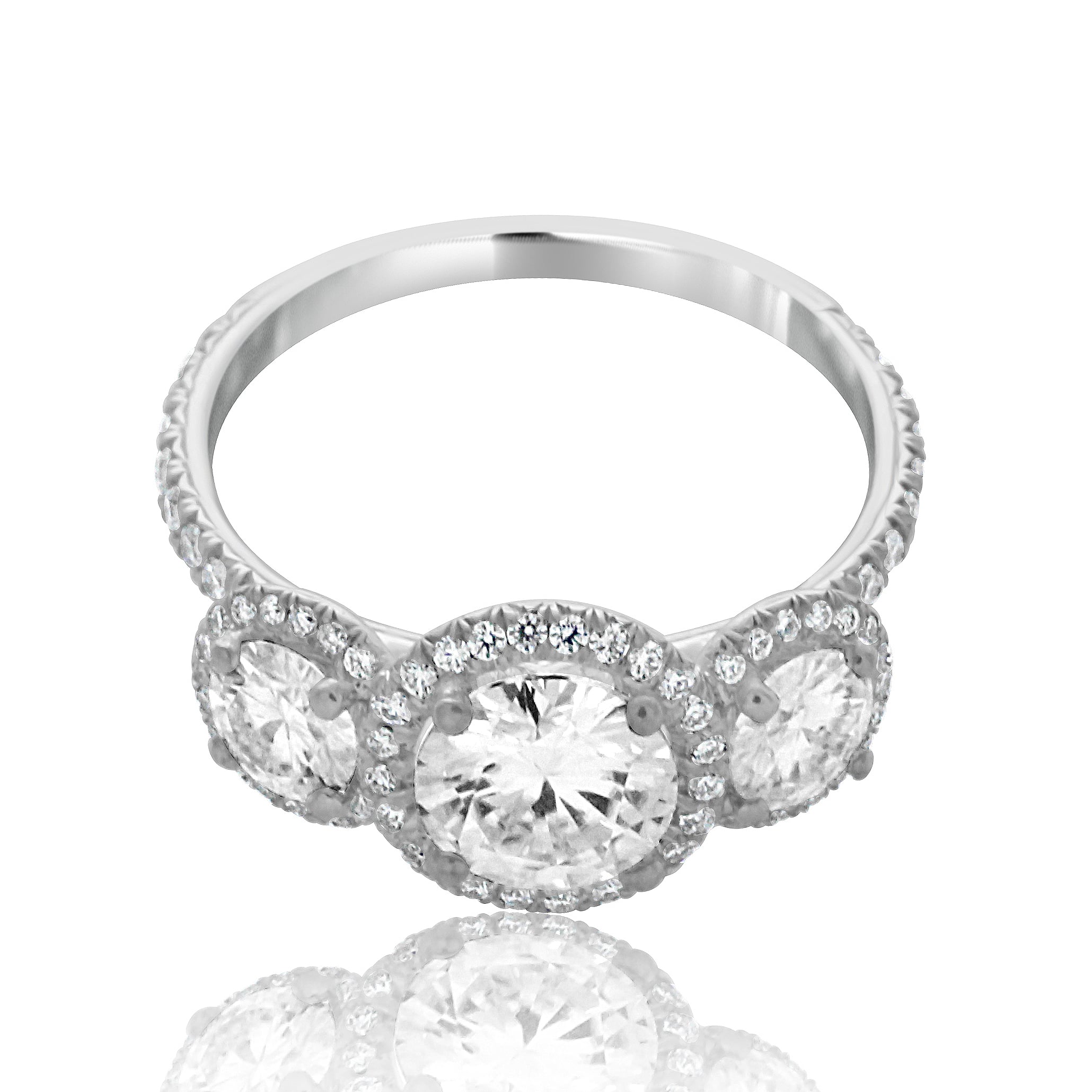 Triple Halo Engagement Ring Three Stone Forever One Moissanite Diamond Halo 14k Gold Ring