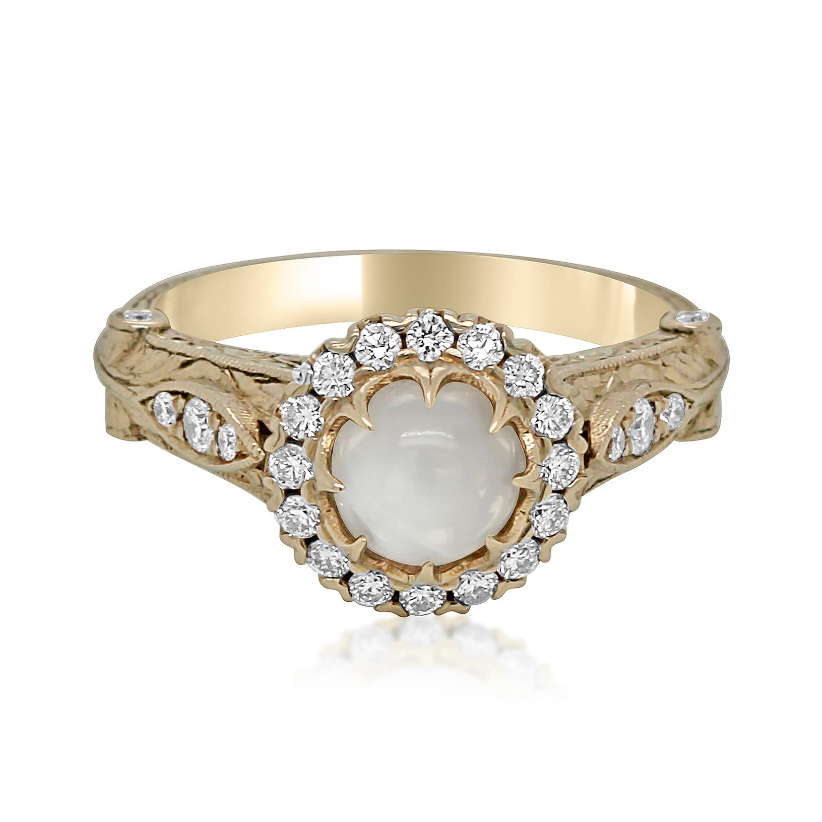 Vintage Cabochon Moonstone and Diamond Ring